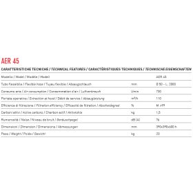 Il depuratore portatile pneumatico AER 45 permette di filtrare i fumi di saldatura in ambienti chiusi o difficili da raggiungere con i normali sistemi di abbattimento dei fumi, ed è ideale per concentrazioni medio-basse di inquinanti e per un uso intermittente. Efficienza di filtrazione: M >99%.