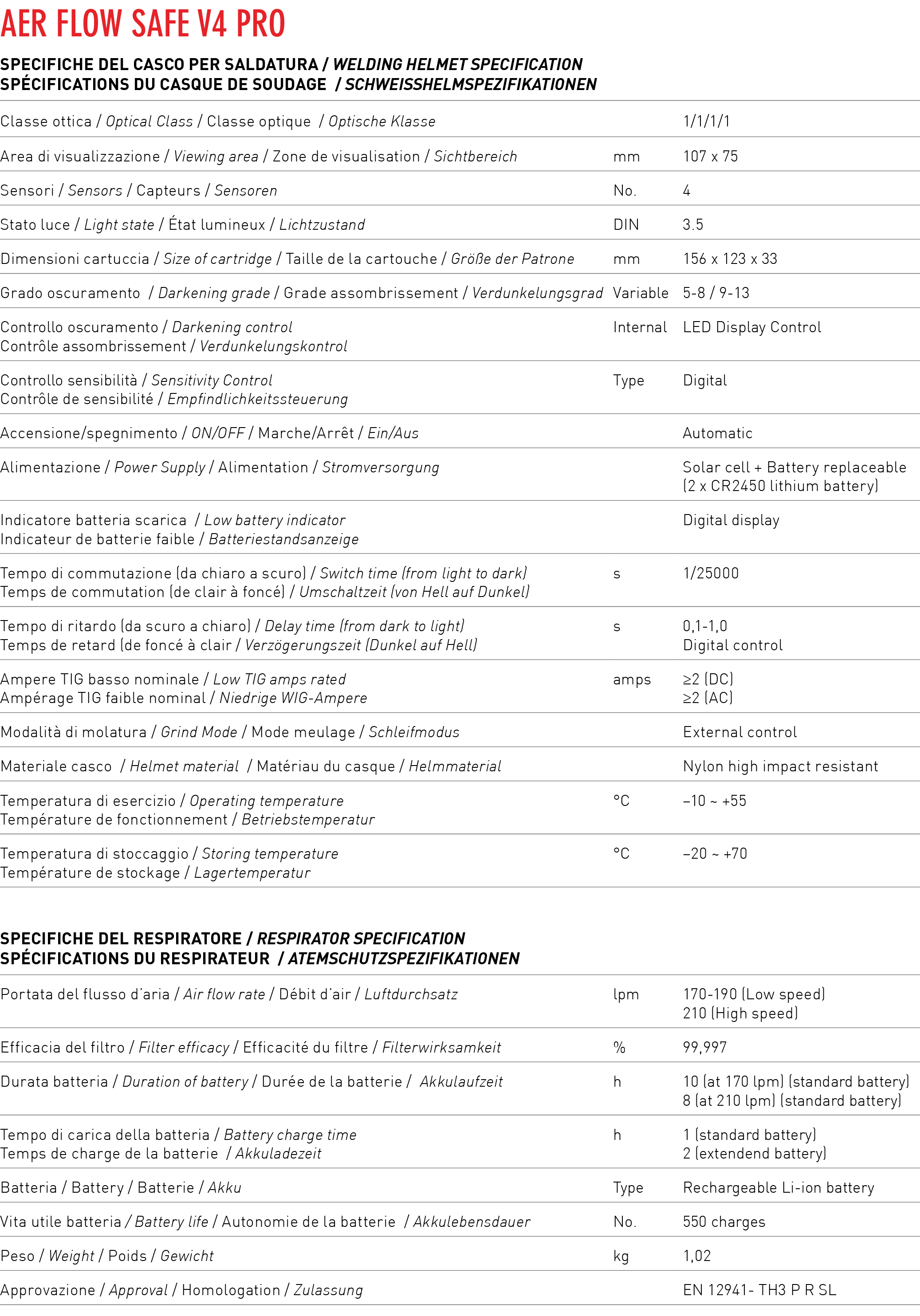 AER FLOW SAFE V4 PRO è la nuova maschera elettroventilata per saldatura auto-oscurante di Aerservice, dotata di sistema PAPR (Powered Air Purifying Respirator). Maschera dal design iperconfortevole con ampia area di visibilità e dotata di filtro classe ottica 1/1/1/1.